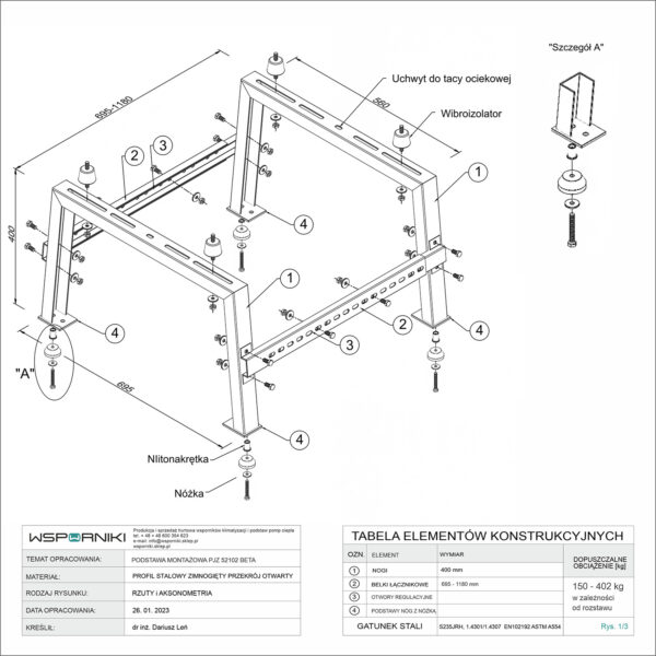 Podstawa stalowa do montażu jednostki zewnętrznej / malowana podkładem cynkowym i farbą – PJZ 52/102 BETA M