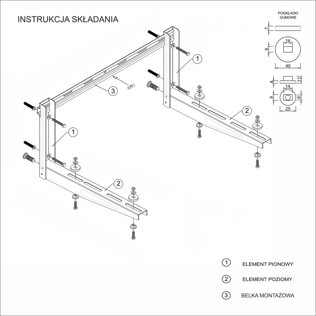 - Złóż wspornik zgodnie z instrukcją na rysunku technicznym.