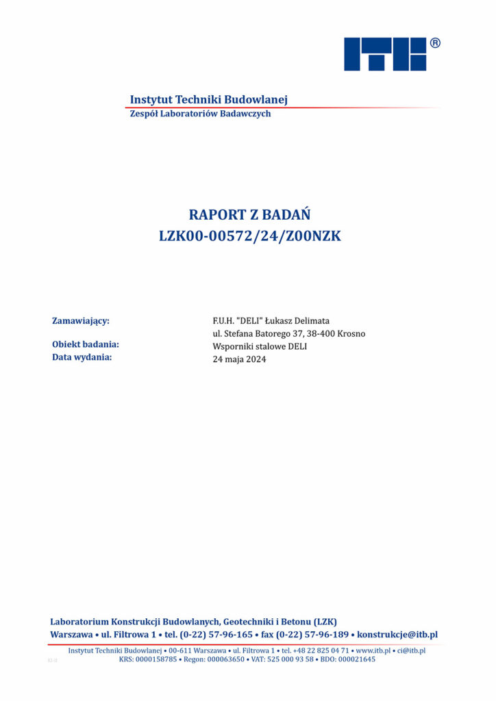 Raport z badań naszych wsporników ma numer LZKOO-OO572/24/Z00NZK