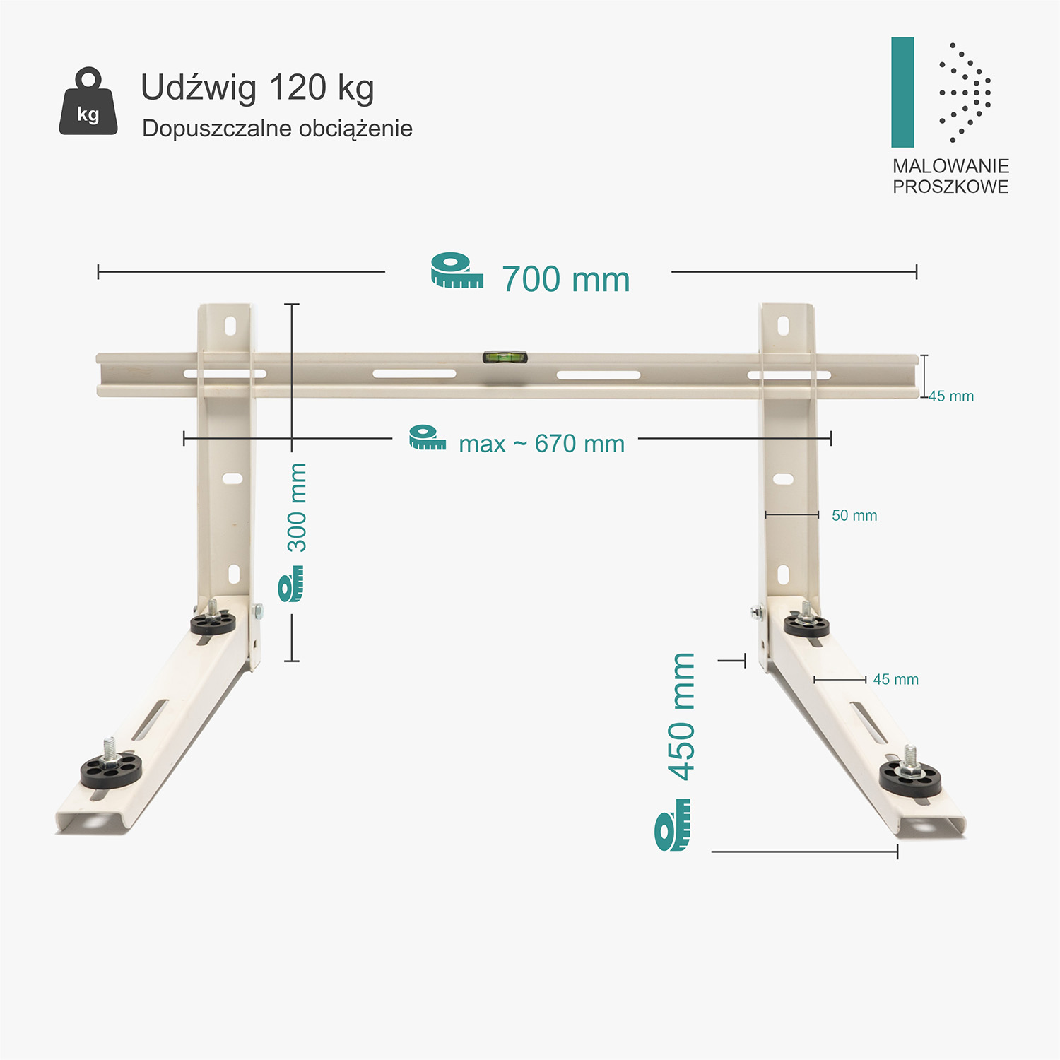 Maksymalne obciążenie dla tego modelu wspornika wynosi – 120 kg.