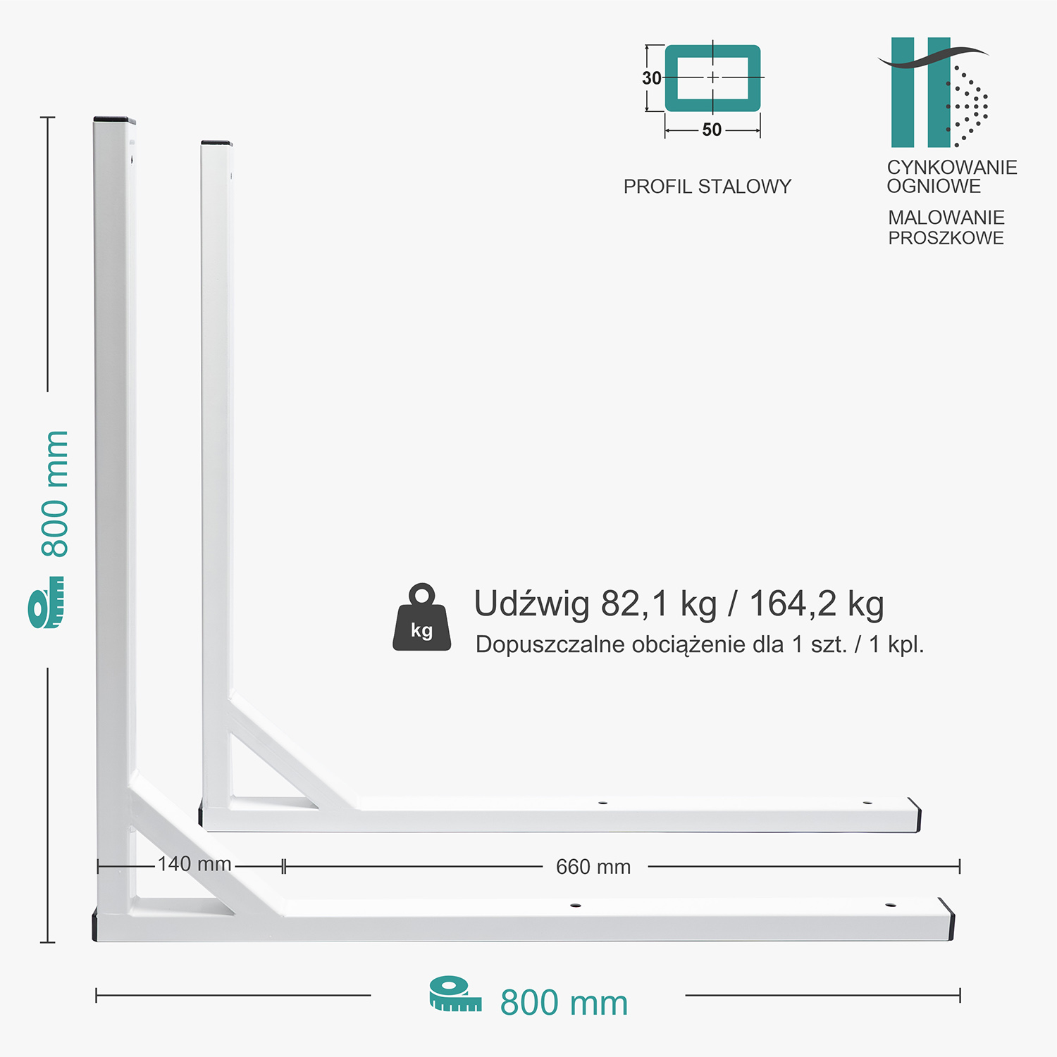 Wsporniki dostępne w trzech kolorach: bały, antracytowy i czarny. Wybierz kolor przed dodaniem do koszyka.