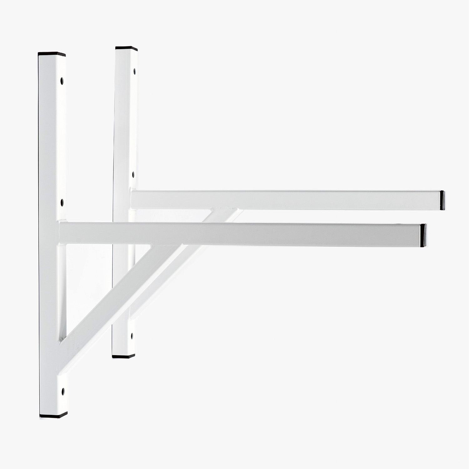 Dzięki temu, że pojedyncze wsporniki montuje się na ścianie niezależnie od siebie, można na nich zainstalować niemal każde urządzenie zewnętrzne o dowolnej szerokości, którego waga jest odpowiednia do udźwigu uchwytu.
